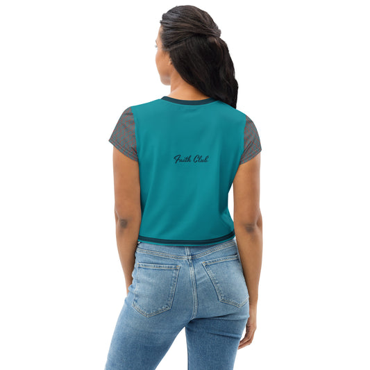 ATTITUDE. All-Over Print Crop Tee. FAITH CLUB.