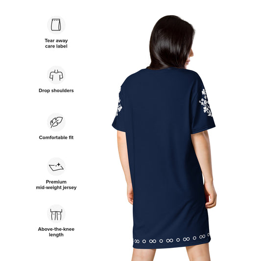 ROOTS! T-shirt dress. FOLKLORE. Navy.