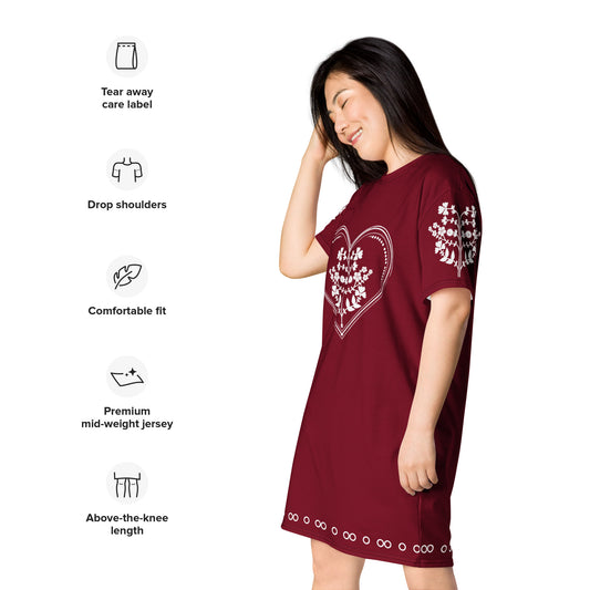 ROOTS! T-shirt dress. FOLKLORE. Wine Red.