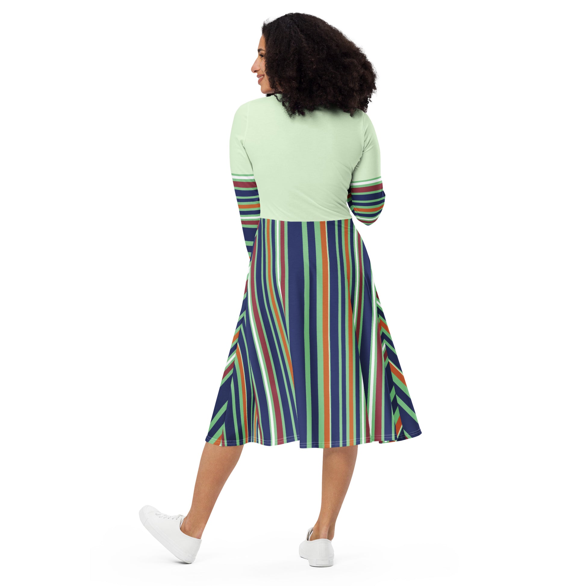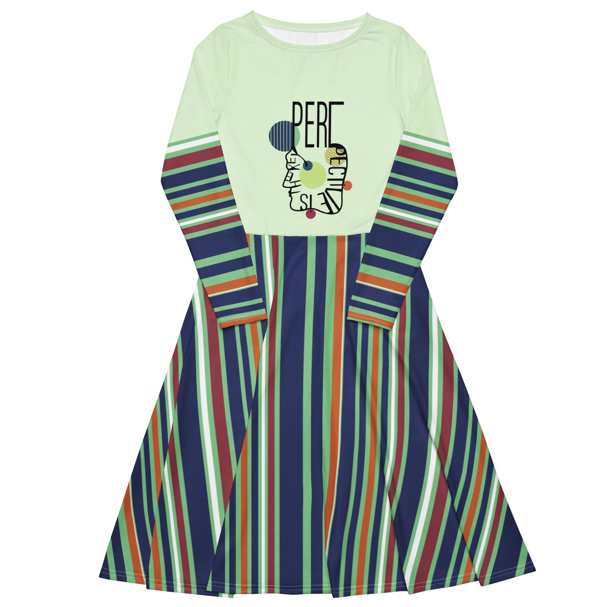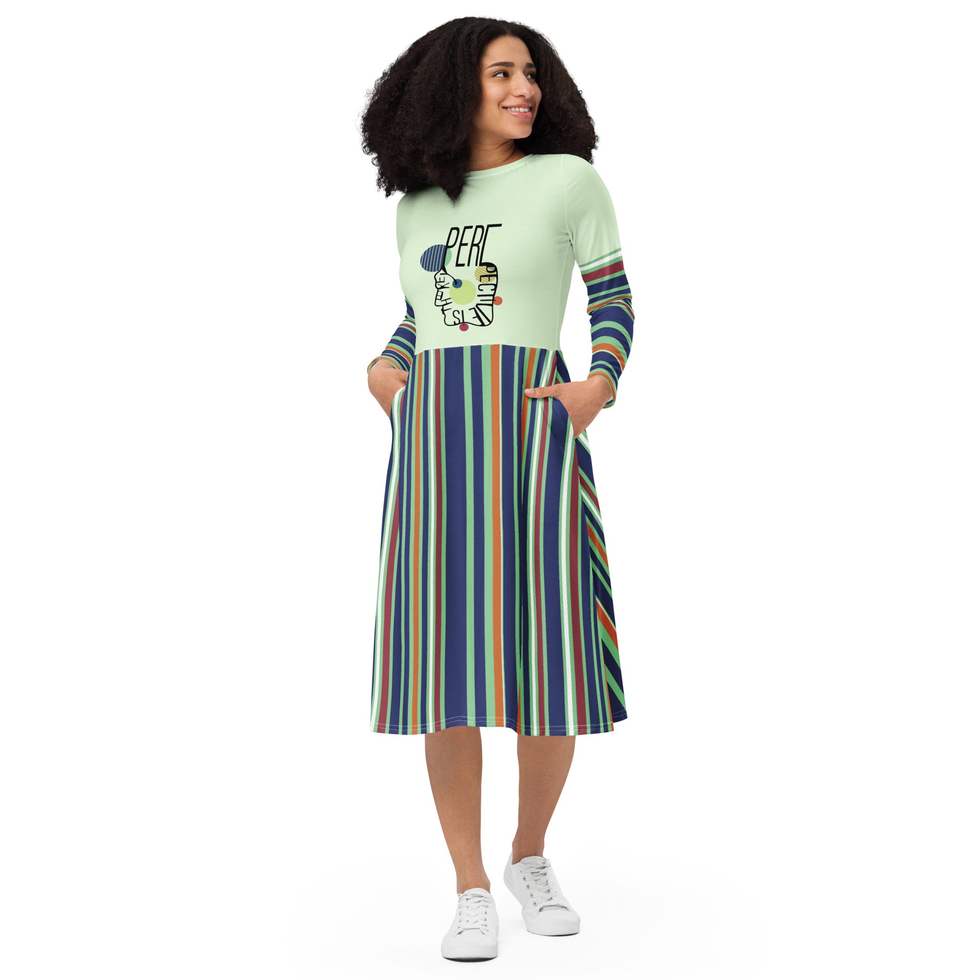 ATTITUDE. All-over print long sleeve midi dress. PERSPECTIVE.