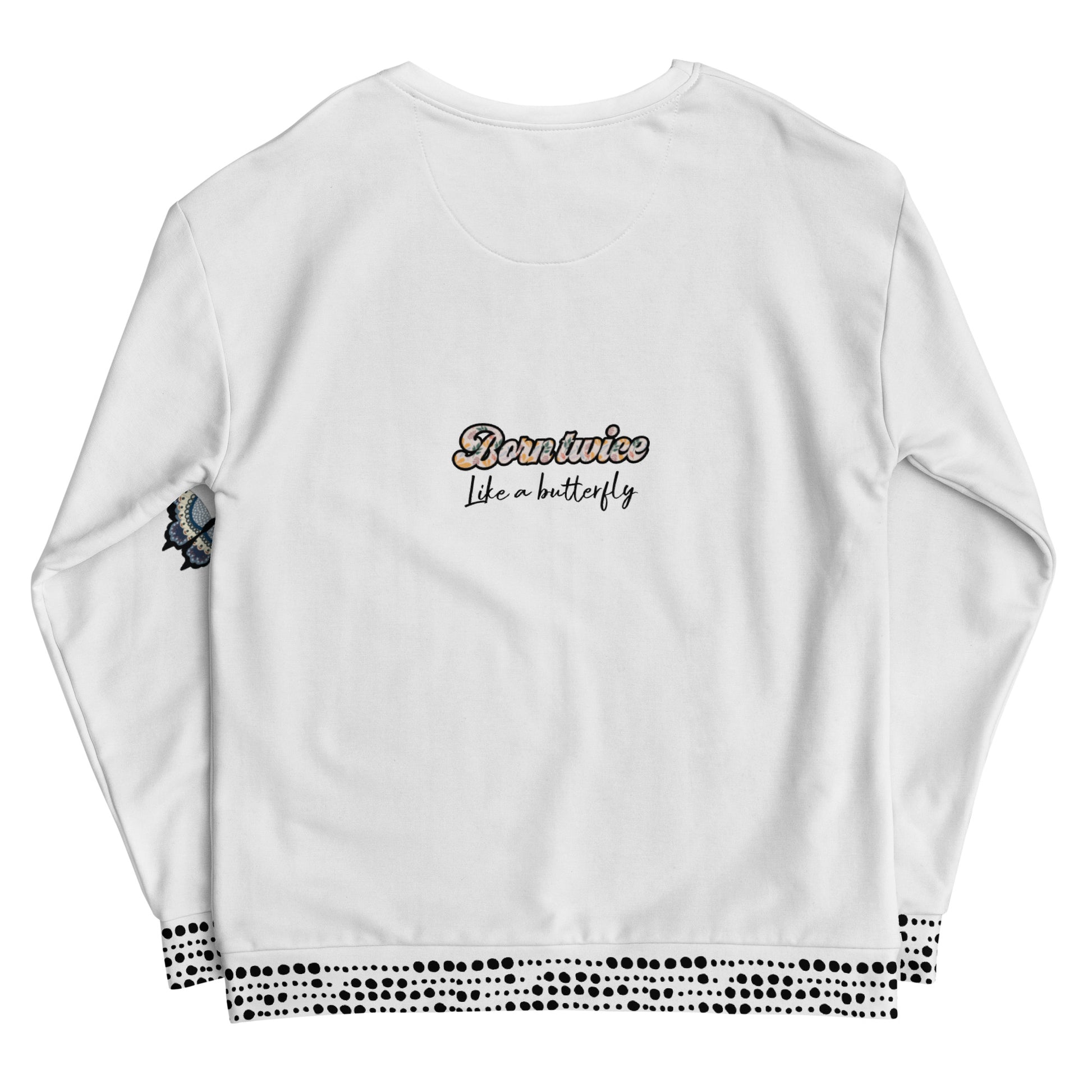 Did you know the butterfly symbolises transformation? Born twice—first as a caterpillar, then after emerging from its cocoon. Our long-sleeve sweatshirt with butterfly designs inspired by Japanese kimono patterns embodies strength and resilience. Wear it and stand out—wear your story.